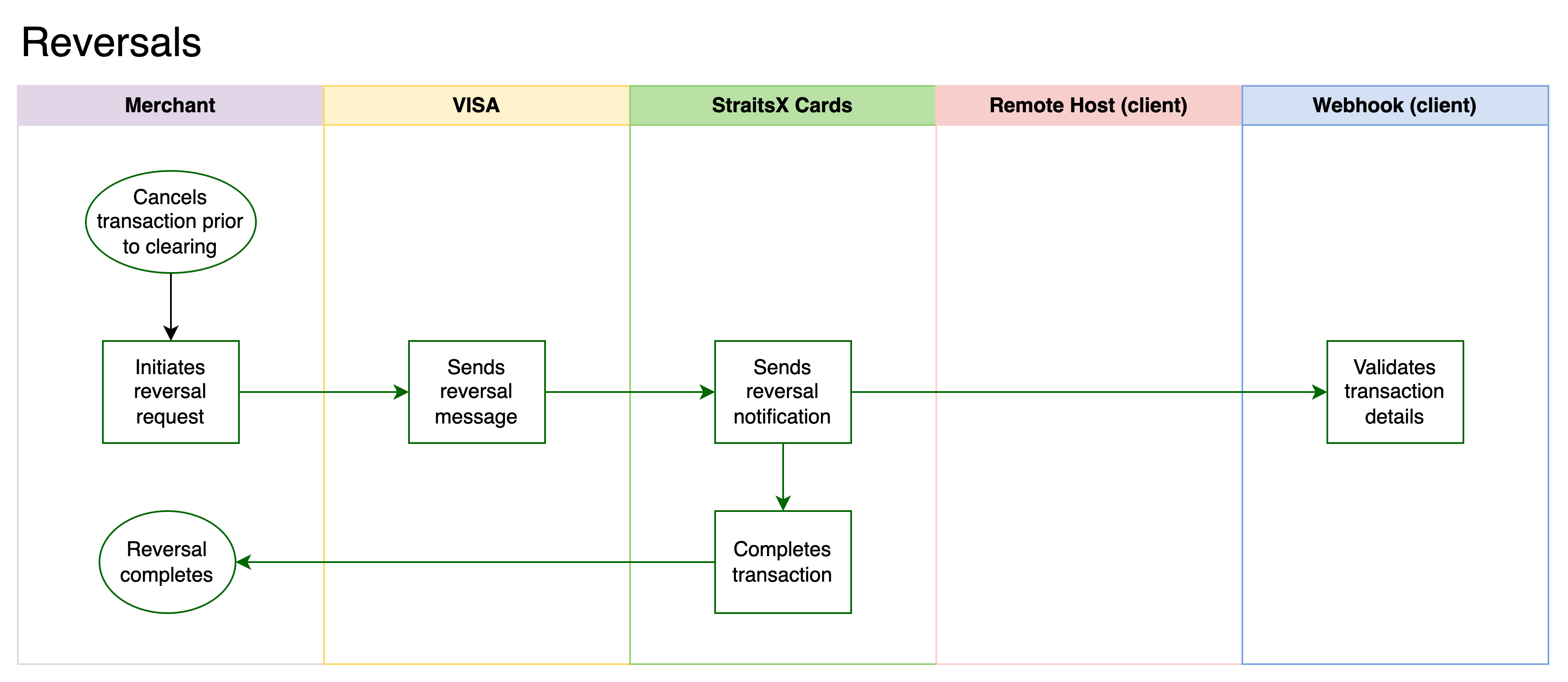 The card network sends a reversal message to StraitsX.