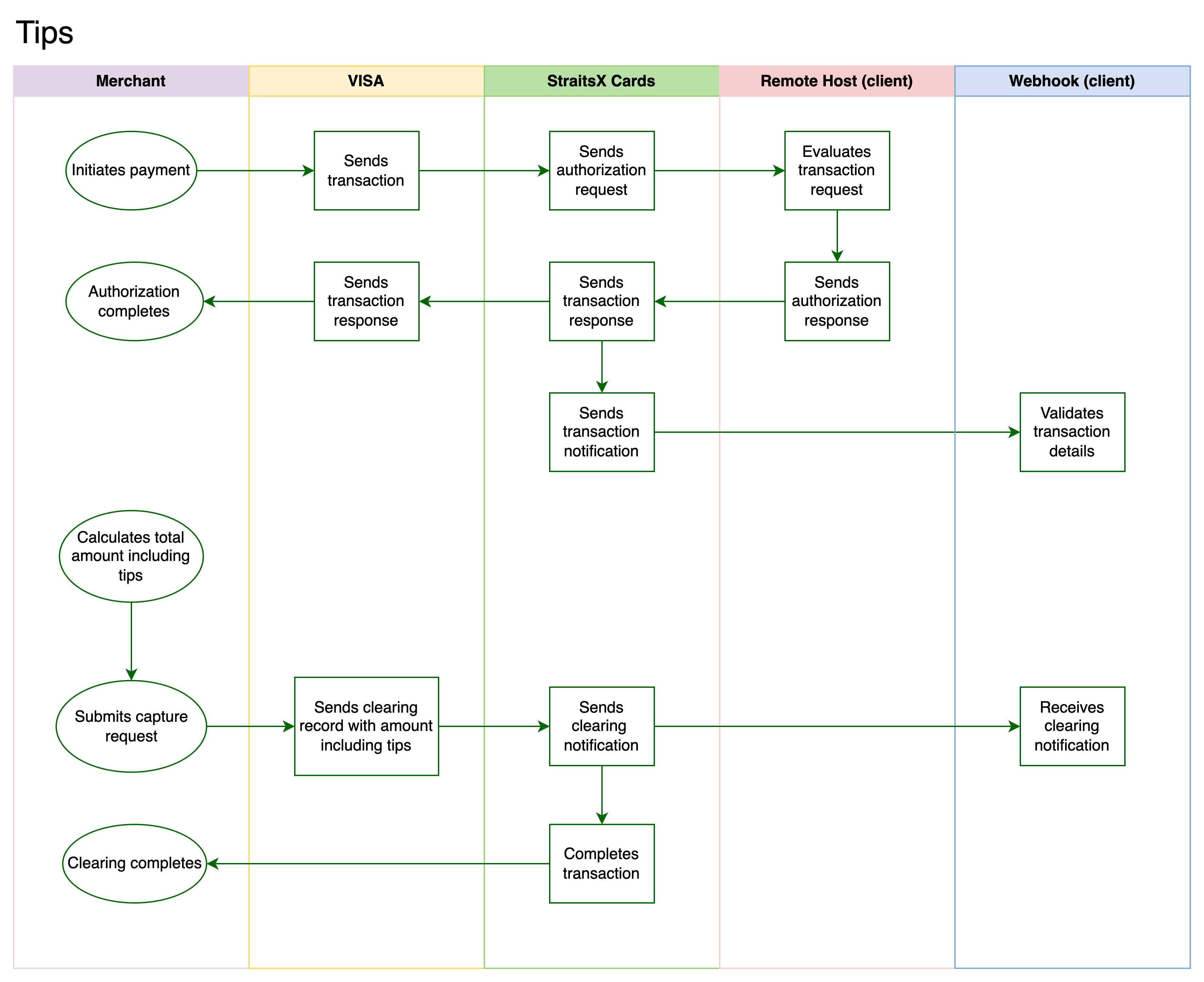 The card network sends a clearing record to StraitsX.