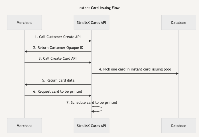 - Merchants can still use the current card creation flow using the existing product opaque ID that StraitsX share previously by passing non instant issuing card product opaque ID.